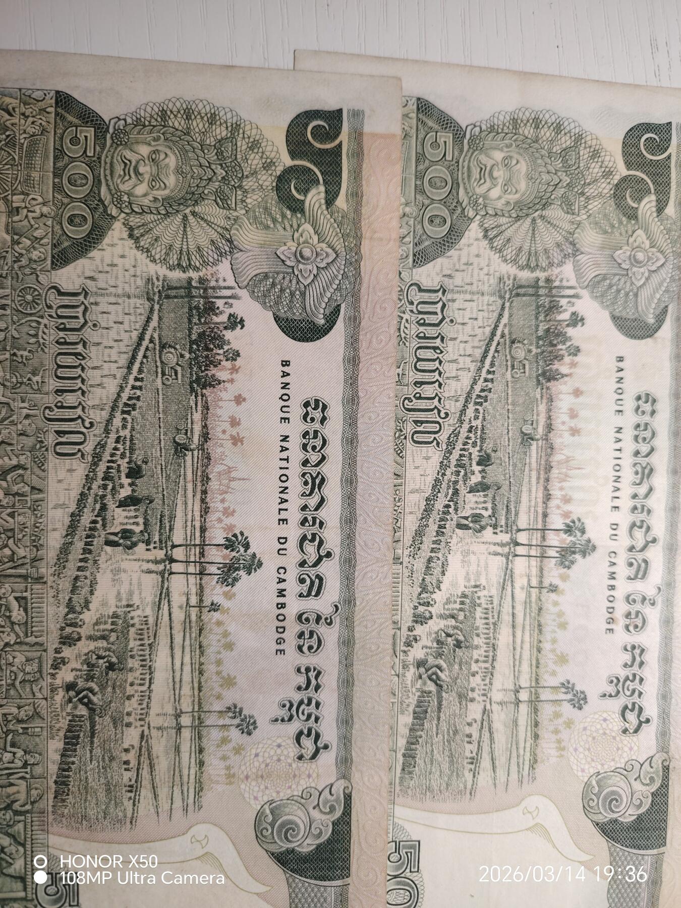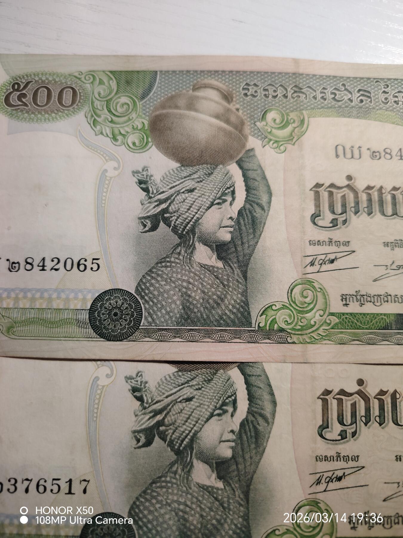 柬埔寨1968年500瑞尔靓品纸币