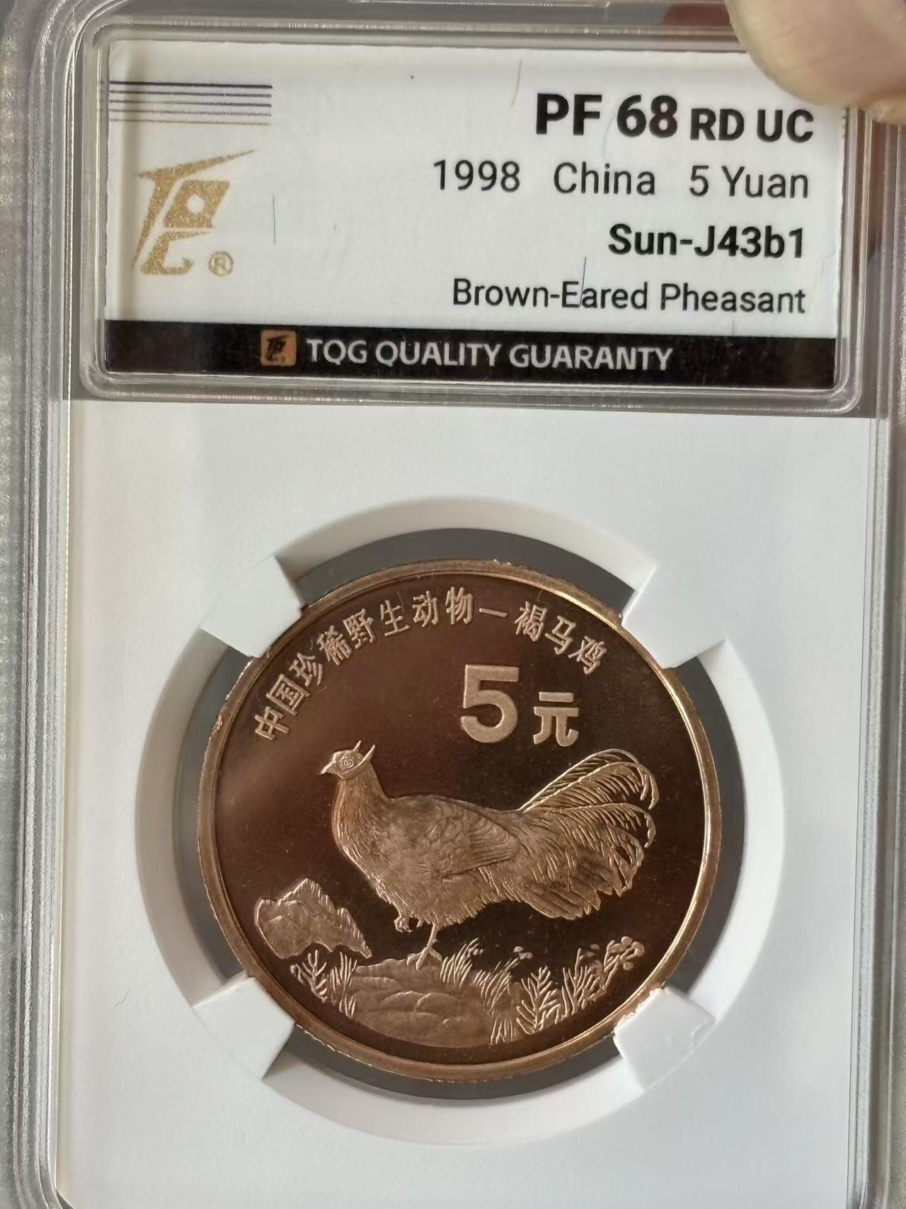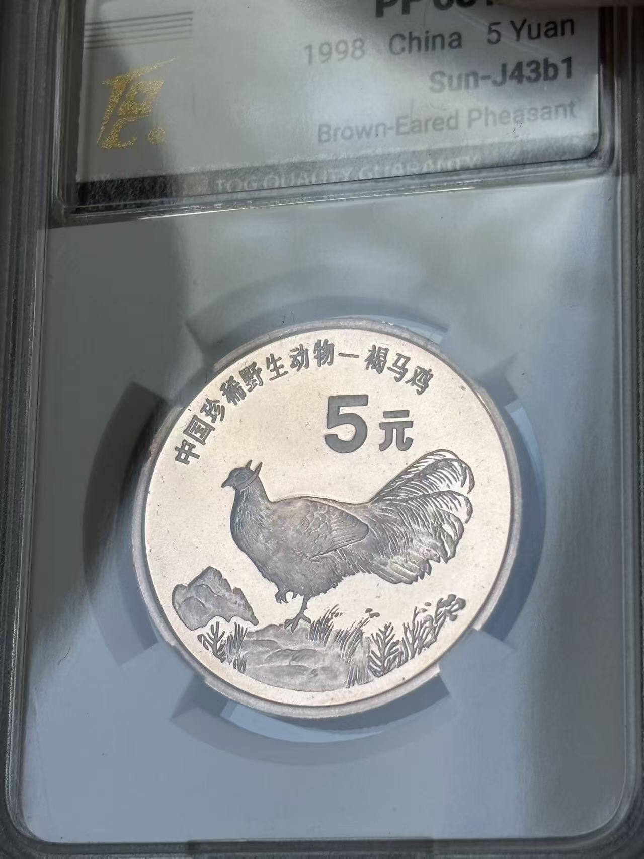 1998年珍惜野生动物褐马鸡纪念币,康银阁装帧,发行量60万枚,银行原封包拆绝品!按图发货!
