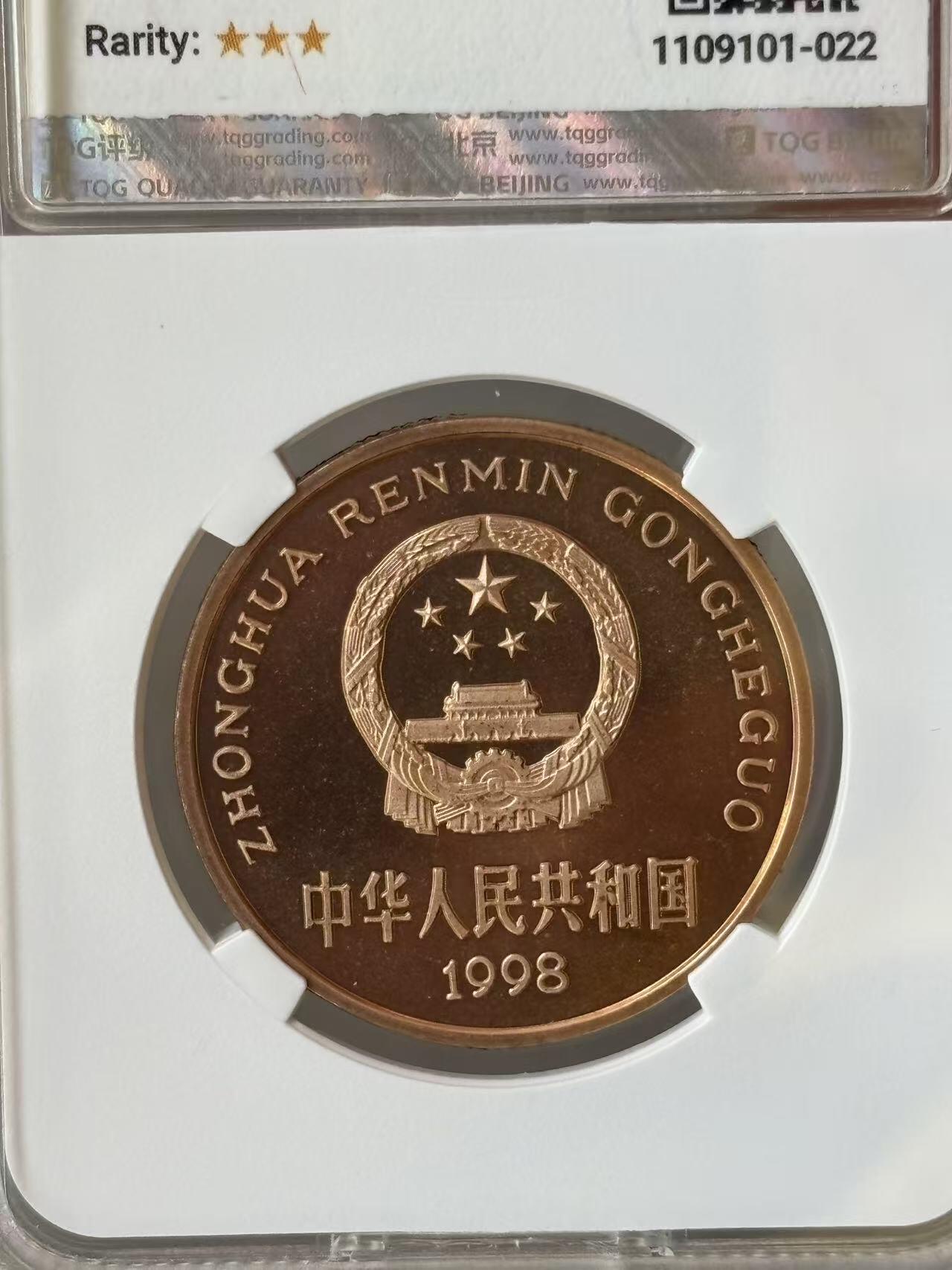 1998年中国珍惜野生动物褐马鸡纪念币一枚,品好,紫铜纪念币中的佼佼者!按图发货!