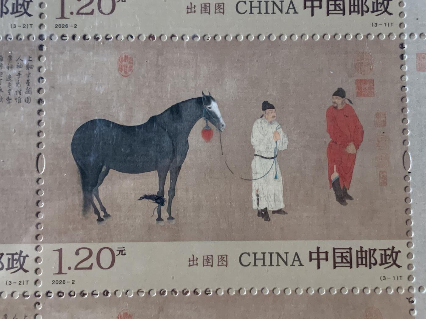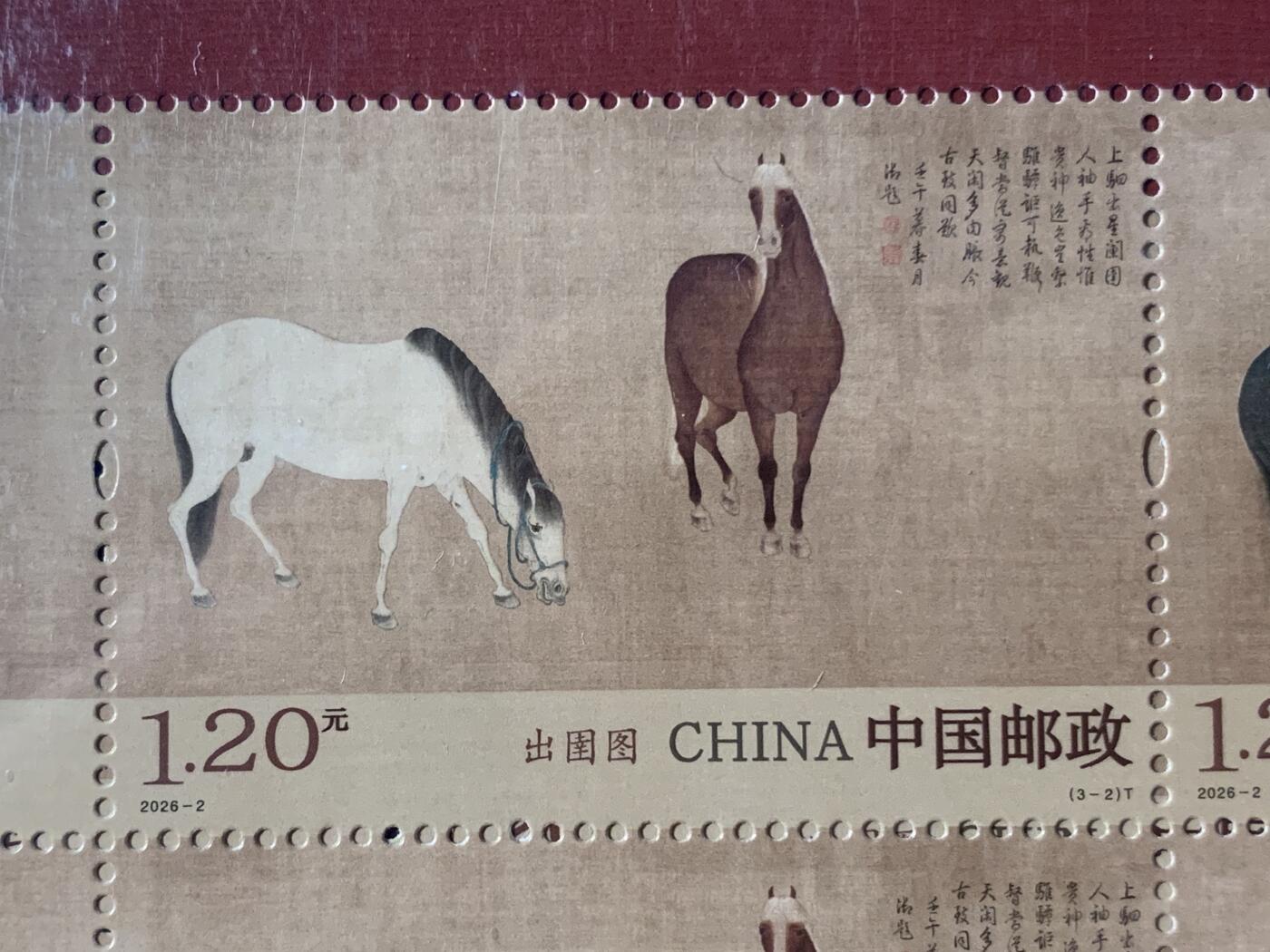 2026年发行的《出圉图》特种邮票大版张,原型为元代任仁发同名古画。这画家名字谐音挺吉祥“人人发”,暗示“人人发财”?炒作氛围是真浓厚。