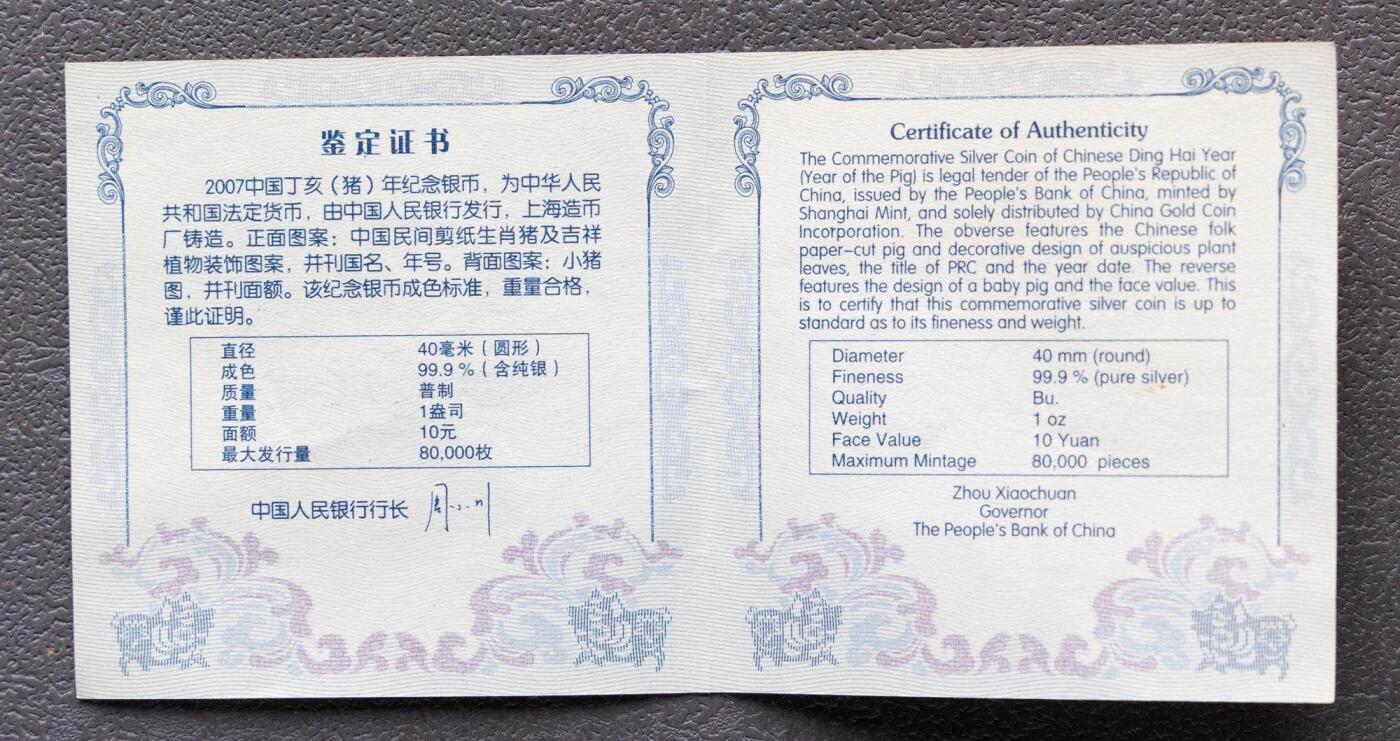 - 发行年份:2007年(丁亥猪年)