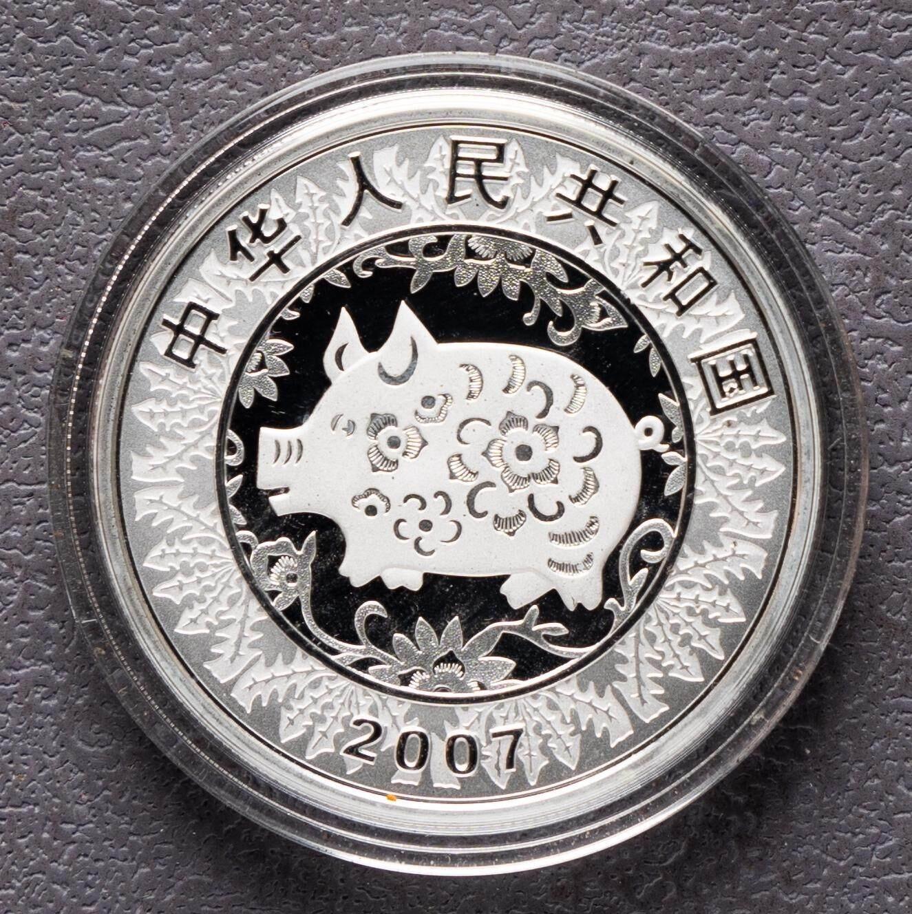 - 正面图案:中国民间剪纸风格的生肖猪装饰纹样,刊国名“中华人民共和国”及年号“2007”,体现传统民俗与法定货币属性。