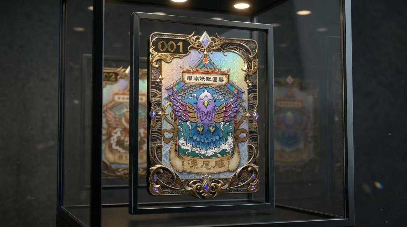现在呈现在您面前的,是极具分量的一件藏品——《闽南妖兽图鉴》编号 001「冻尾雕」收藏卡牌!