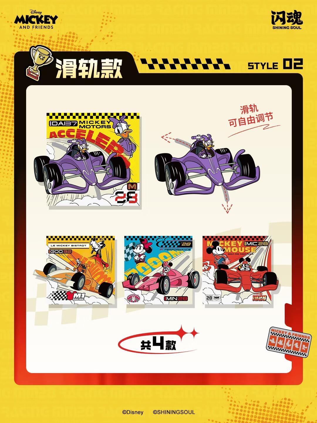 闪魂x迪士尼-米奇和朋友们-SPEED系列F1联动金属磁吸徽章 【规格】8小盒/中盒,12中盒/箱 【零售价】39元/小盒,312元/中盒,3744元/箱 【产品尺寸】约60x60mm 【主要材质】梓合金、铁