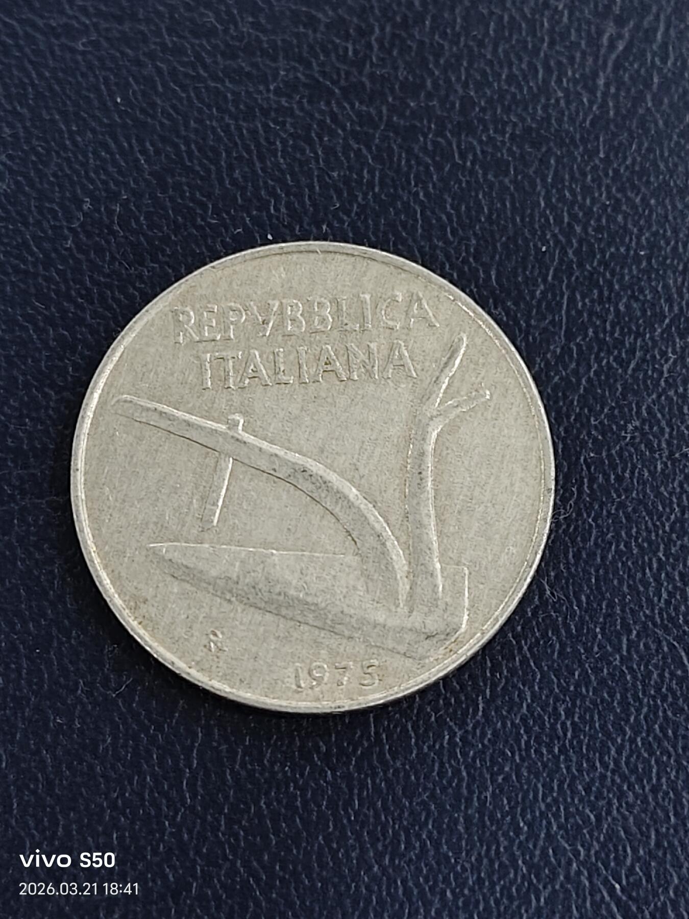 - 这枚硬币材质为铝镁合金,整体呈银灰色,轻便且易流通,是20世纪70年代意大利日常交易的常见币种。