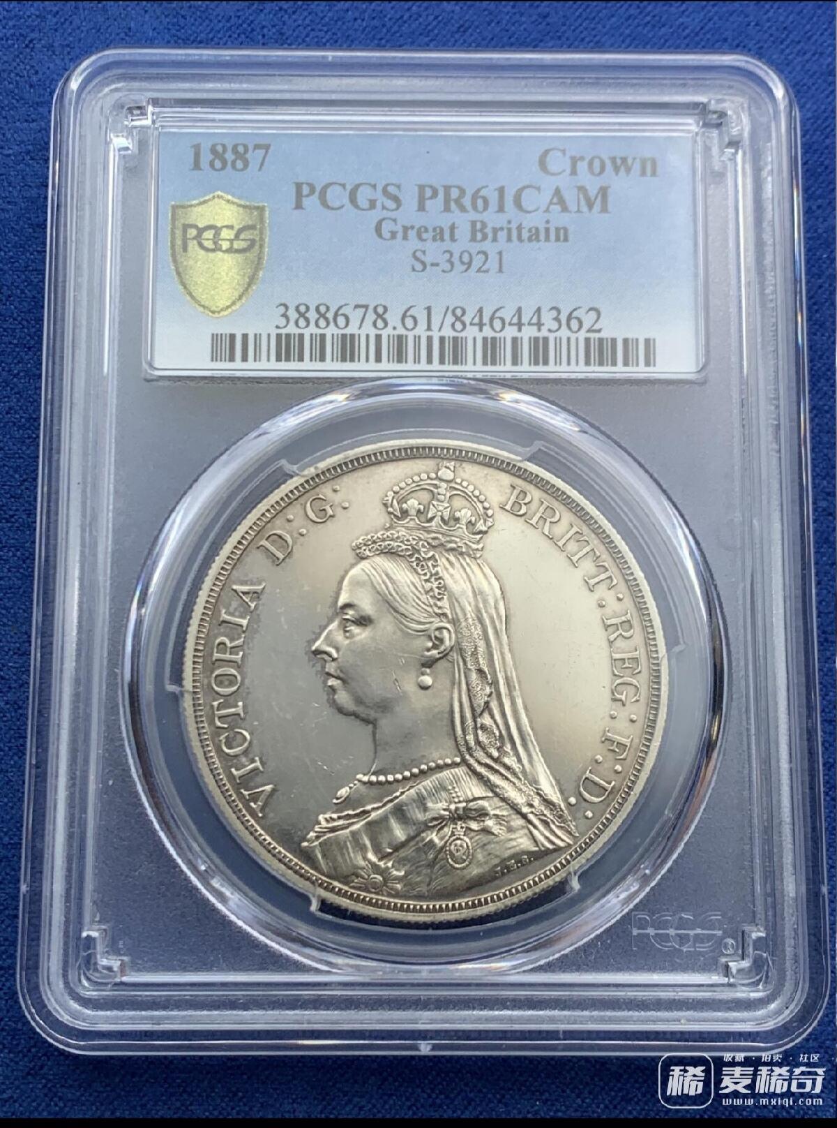PCGS PR61CAM 英国 1887年 精制高冠马剑克朗 银币 发行量1000的经典大热品种 CAM难得 HA一月份N盒同分61CAM拍卖成交价2684刀(Auction61586,Lot23204)