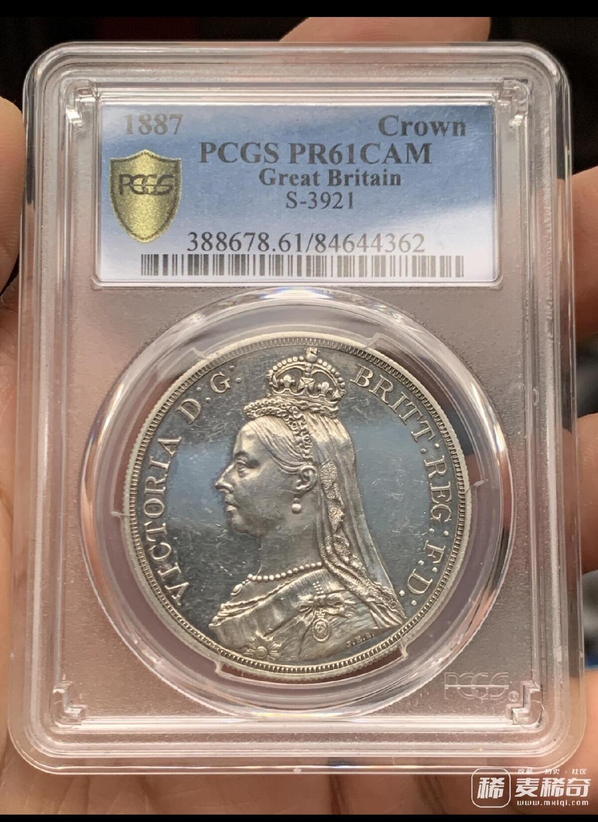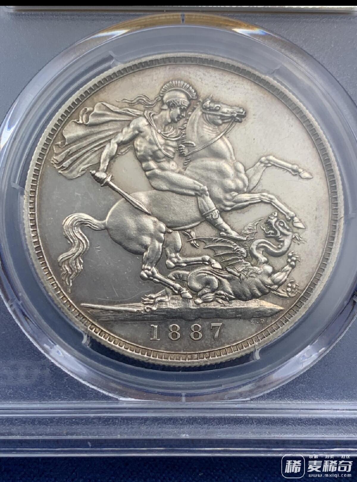 PCGS PR61CAM 英国 1887年 精制高冠马剑克朗 银币 发行量1000的经典大热品种 CAM难得 HA一月份N盒同分61CAM拍卖成交价2684刀(Auction61586,Lot23204)