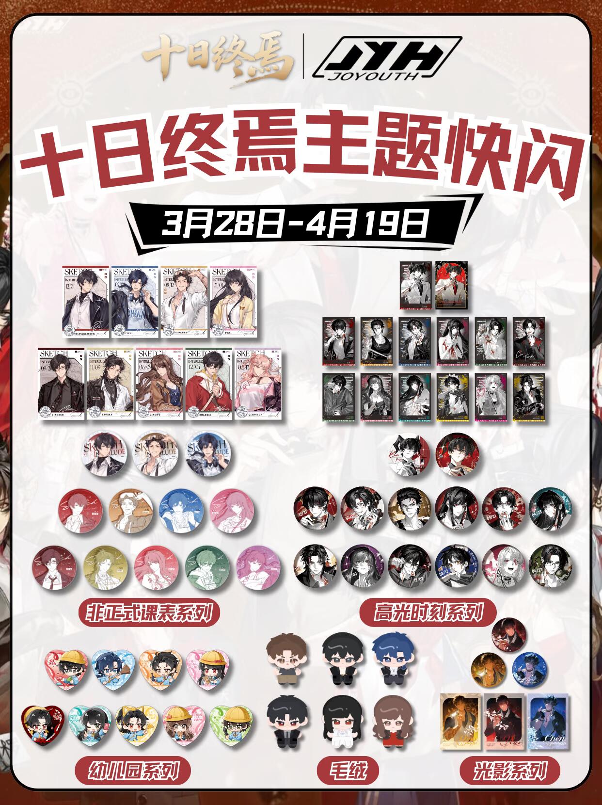 3.28-4.19!《十日终焉》主题快闪攻略速收! 循光破局,终焉相见! JOYOUTH十日终焉主题快闪来啦!🎉 📆时间:3月28日-4月19日 ⭐周边:非正式课表系列、高光时刻系列、幼儿园系列、光影系列、毛绒 📍城市:上海静安大悦城北座1F中庭