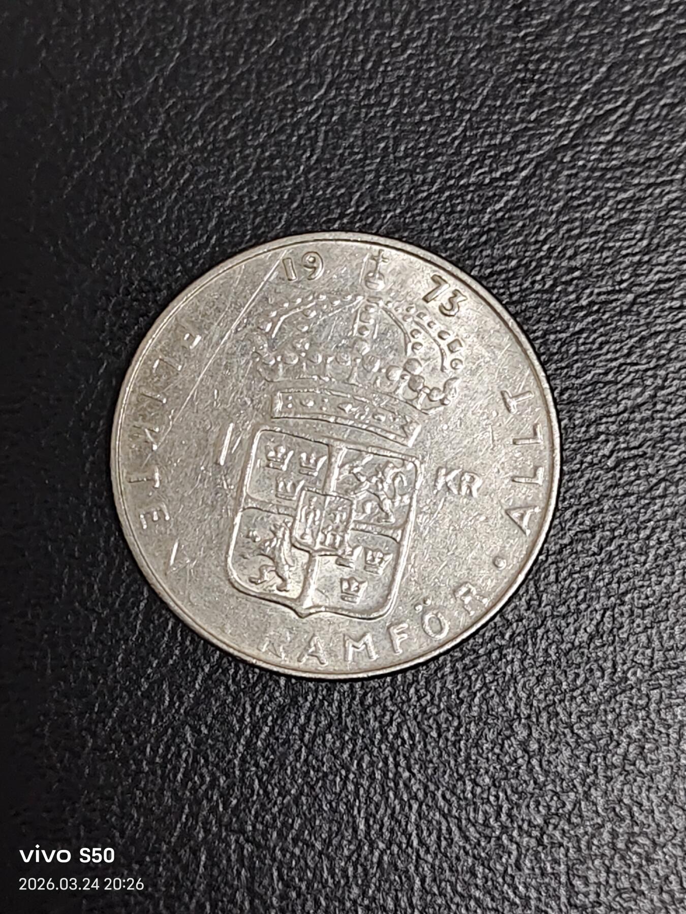 🪙 这是一枚1973年瑞典1克朗流通硬币
