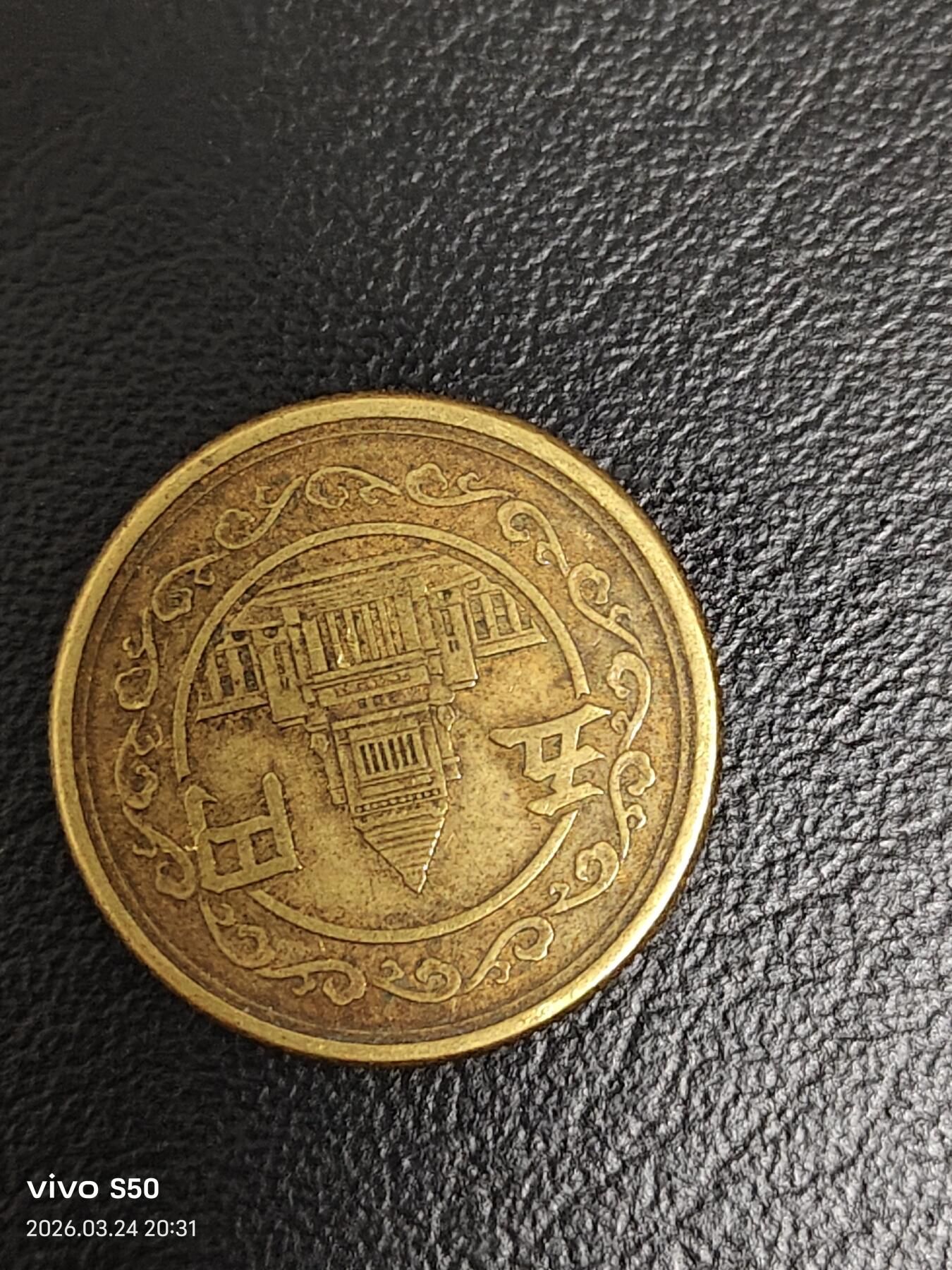 - 材质与规格:黄铜材质(铜锌合金),直径20毫米,重量约3.5克,边缘为齿边(你图片中清晰可见)。