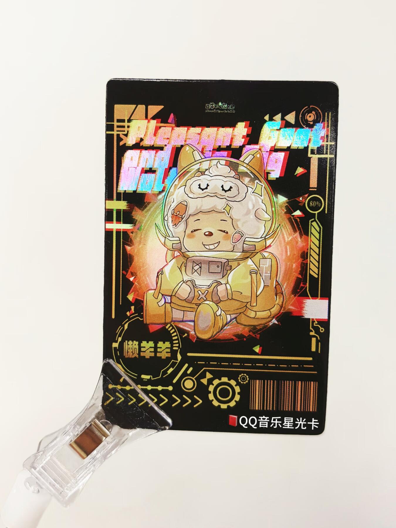 喜羊羊五星卡样品来了~ 🌟镭射工艺|光随影动,璀璨夺目,眼神焦点 ✨双层对裱|厚实挺括,细腻扎实,质感远超单层 💫编码烫金|烫金压印,光泽高级,每张卡都有专属编码,是属于你的独一无二 现在就来🐧音乐🔍喜羊羊,和鹅鹅一起解锁帅气的喜羊羊吧! *最终版本仍在监修中,手机拍摄可能有色差,请以最终实物为准~
