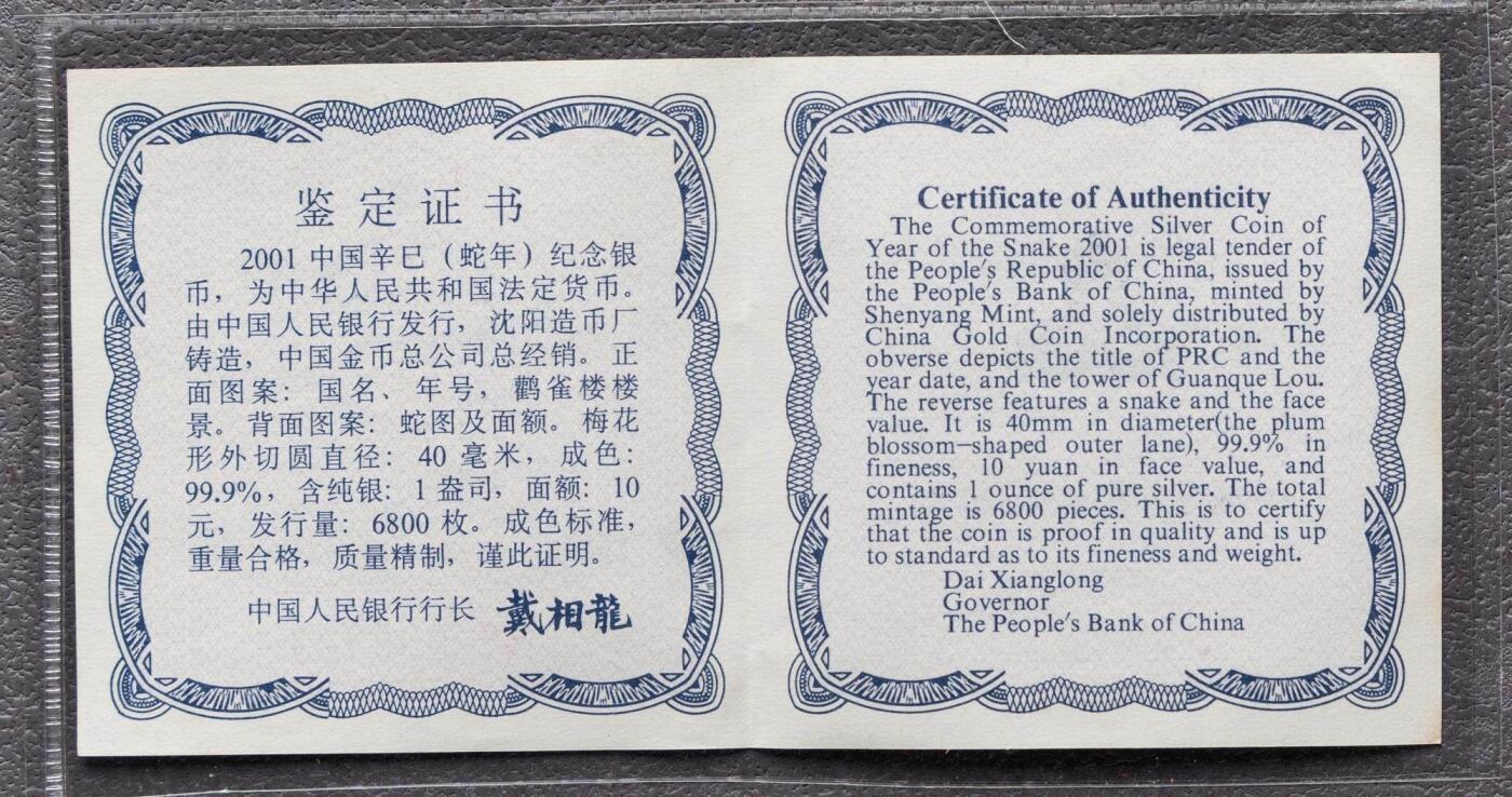 - 发行年份:2001年(辛巳蛇年)