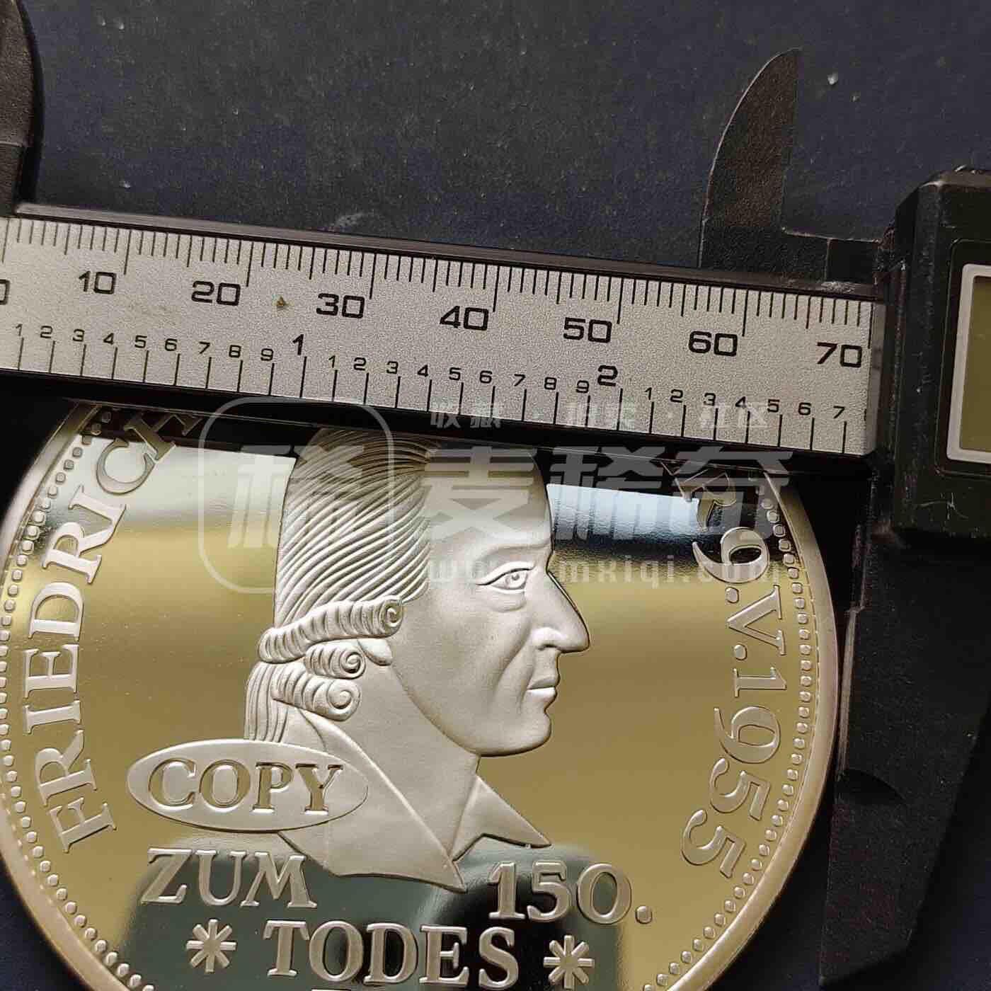 联邦德国5马克席勒逝世150周年纪念币复刻,正面为联邦德国国徽鹰,标注面值与国名;背面为弗里德里希·冯·席勒侧面像,纪念其逝世150周年。