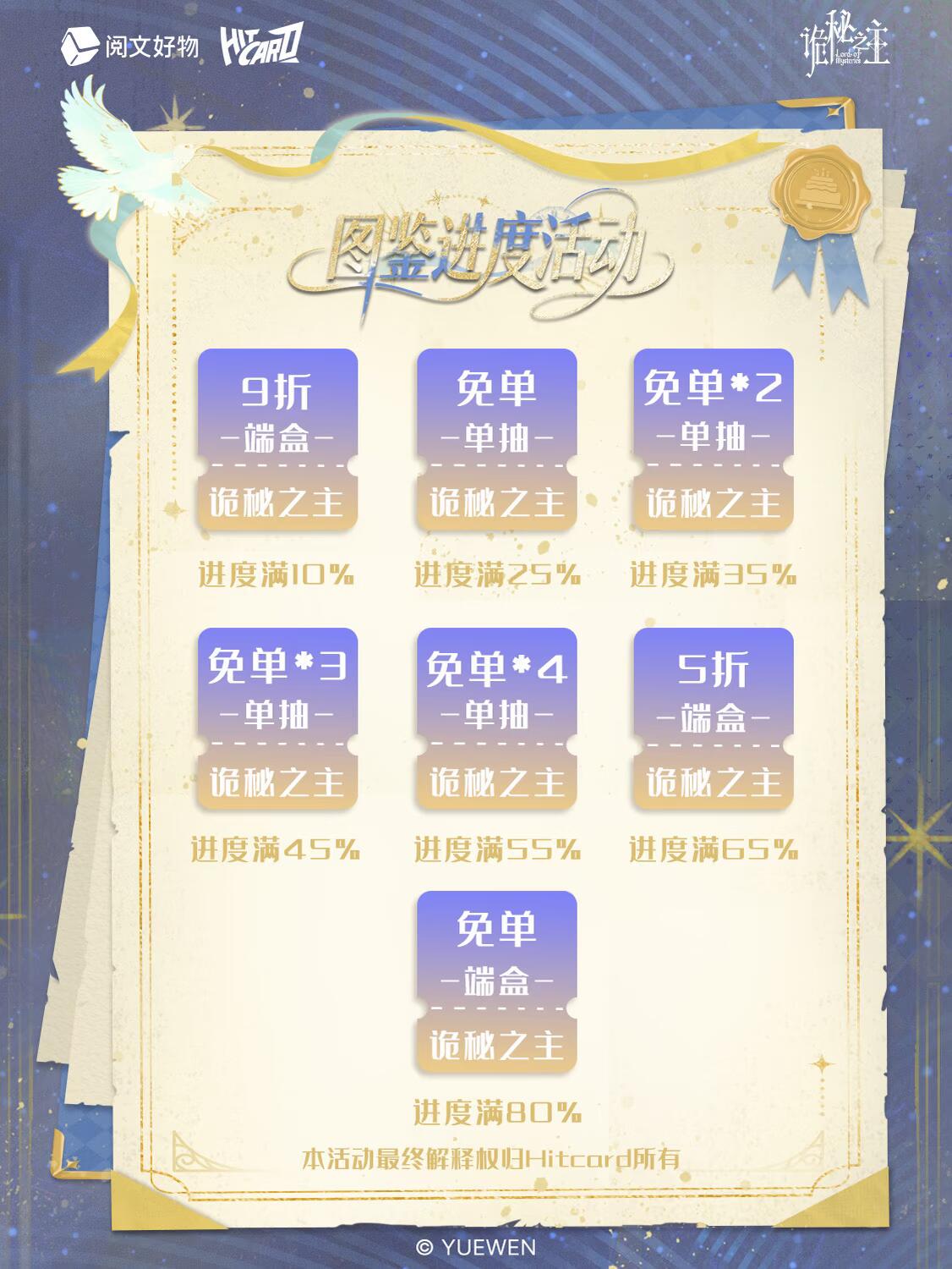 累计解锁卡面,根据图鉴进度,最高可获得1张《诡秘之主》岁影重叙系列收藏卡端盒免费券!