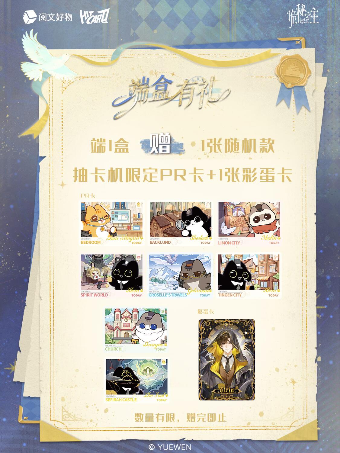 1张随机款抽卡机限定PR卡+1张彩蛋卡(数量有限,送完即止)
