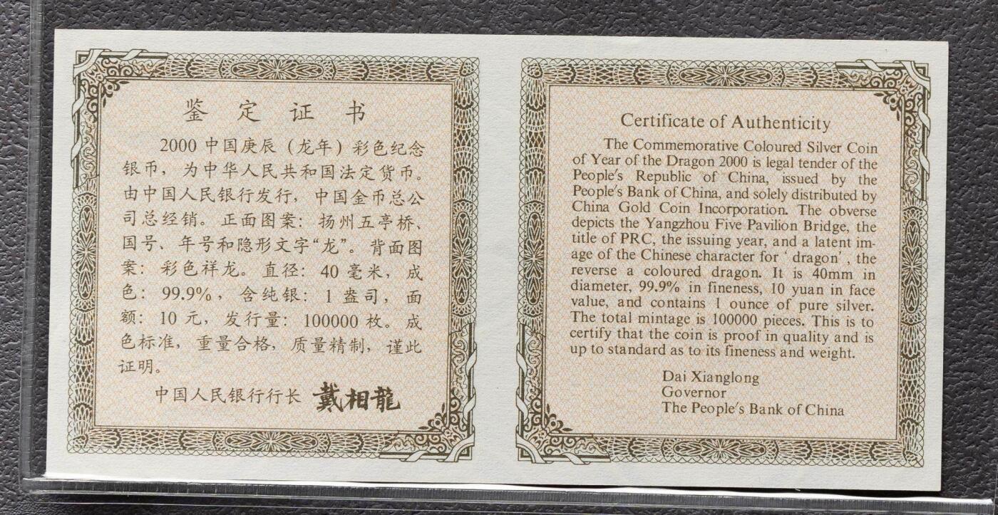 - 该币属于中国第一轮生肖彩色银币系列,是生肖彩银龙头品种之一。