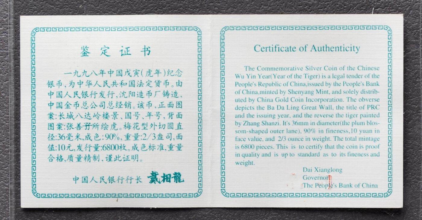 - 发行年份:1998年(戊寅虎年)