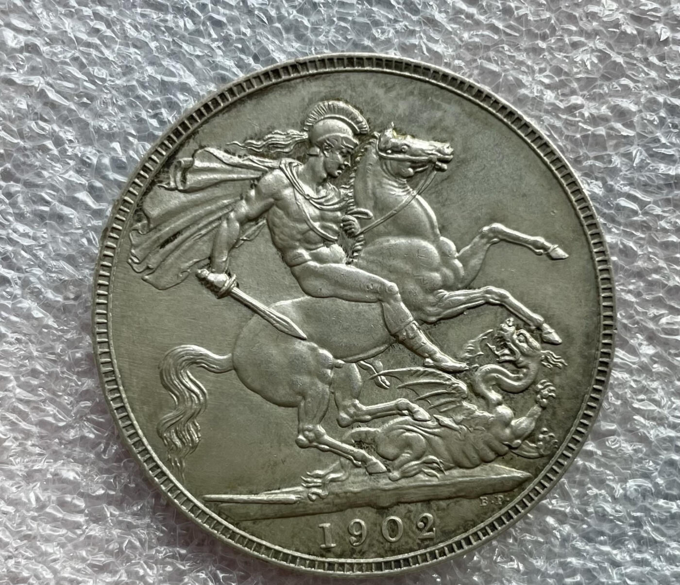 英国1902年爱德华七世圣乔治屠龙马剑银币