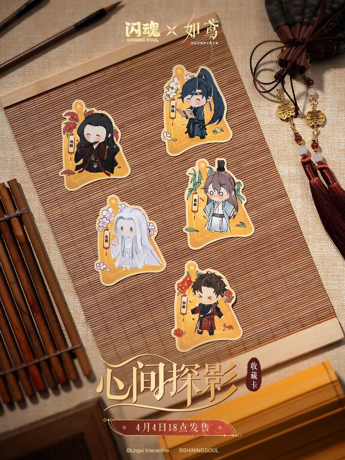 闪魂x如鸢 | 活动卡/卡册/卡砖实拍展示 如鸢 × 闪魂ShiningSoul 「心间探影」收藏卡 4月4日18点发售 四物相伴,心影长存。 🌷花笺卡 珠光流转,如月照花笺。 🔔摇铃卡 铃形入掌,肤触如温。 🪻四季卡册 内置透明收纳页,四季PET分隔页依次铺展—— 将心间探影分册珍藏,与君共护。 💎亚克力卡砖谷美 晶莹如镜,凝光为屏。