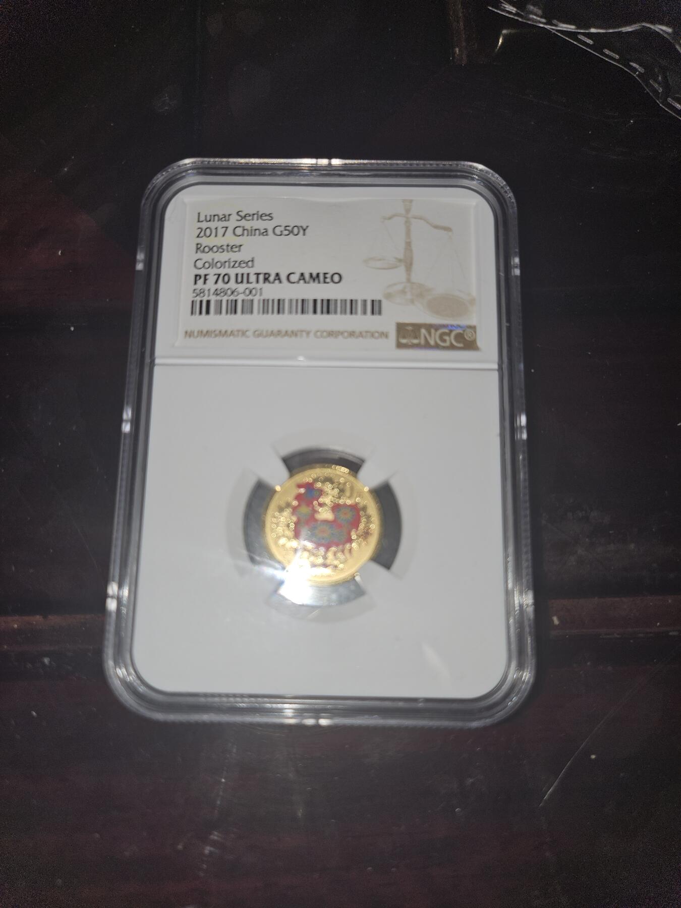 【二轮鸡生肖纪念币】 爱藏评级68分 丁酉鸡年生肖纪念币