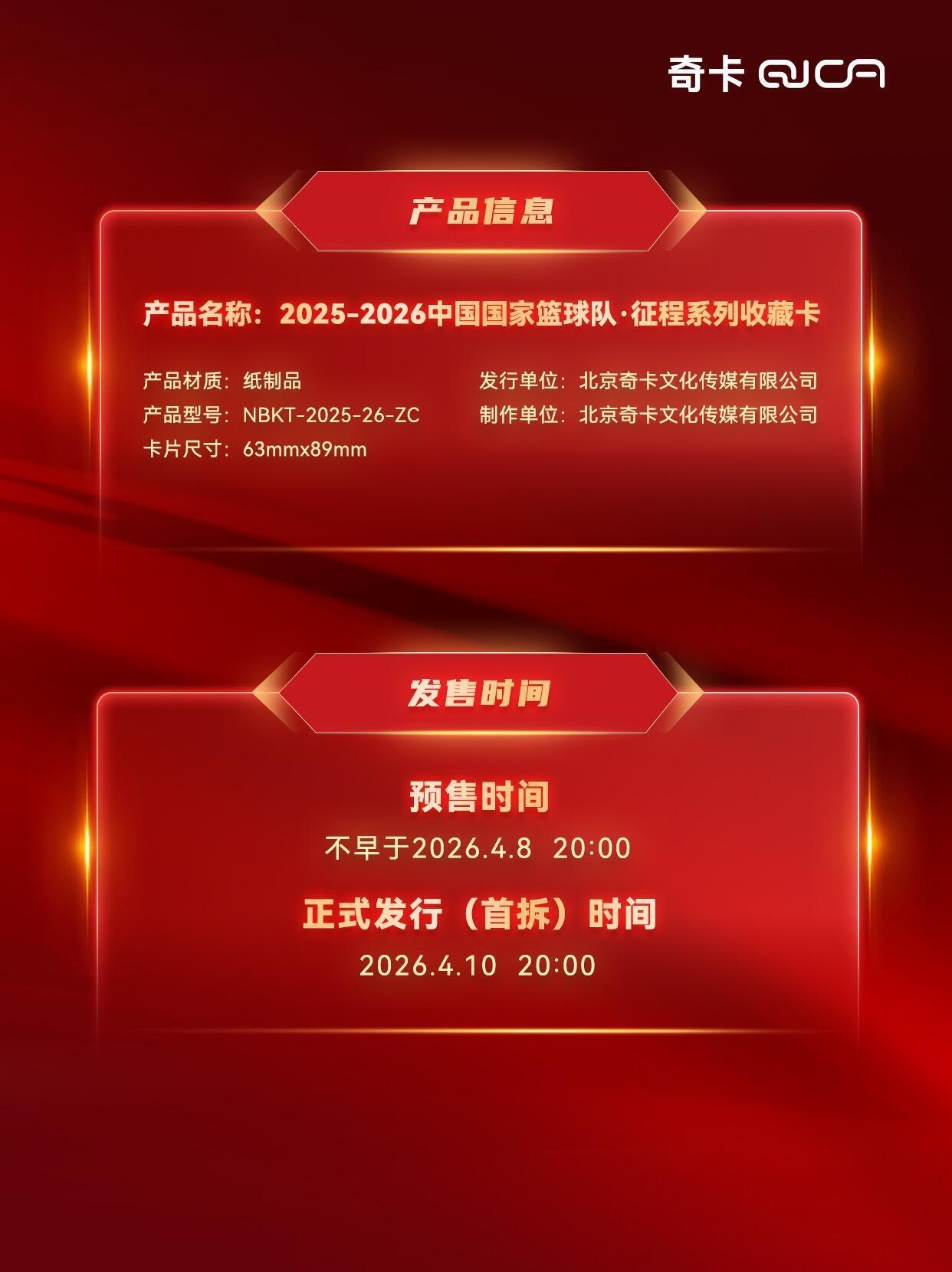 征程系列收藏卡🏀4月10日正式发行! 2025-2026 中国国家篮球队·征程系列收藏卡 即将于4月10日20:00 线上首拆📦 敬请期待🤩 购入方式请查看图3👀 温馨提示[拔草R] 1.笔记内展示的所有卡面均为效果图,具体请以最终实物为准; 2.届时小红书店铺也将上架少量现货(无赠品),请理性、按需购入。