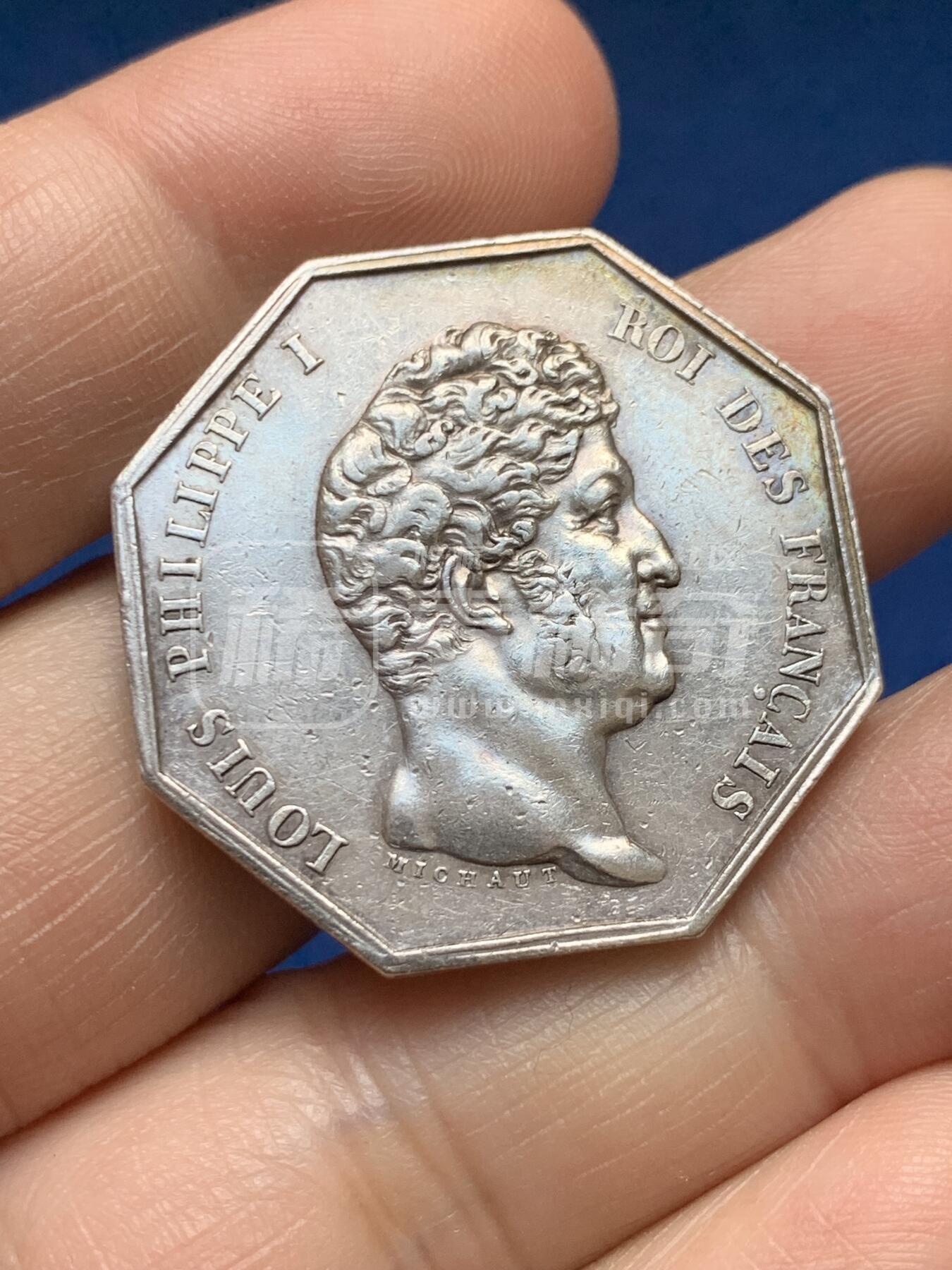 法国 路易·菲利普一世 Jetons 八角代用币 亚眠学院银章 AU 14.5g
