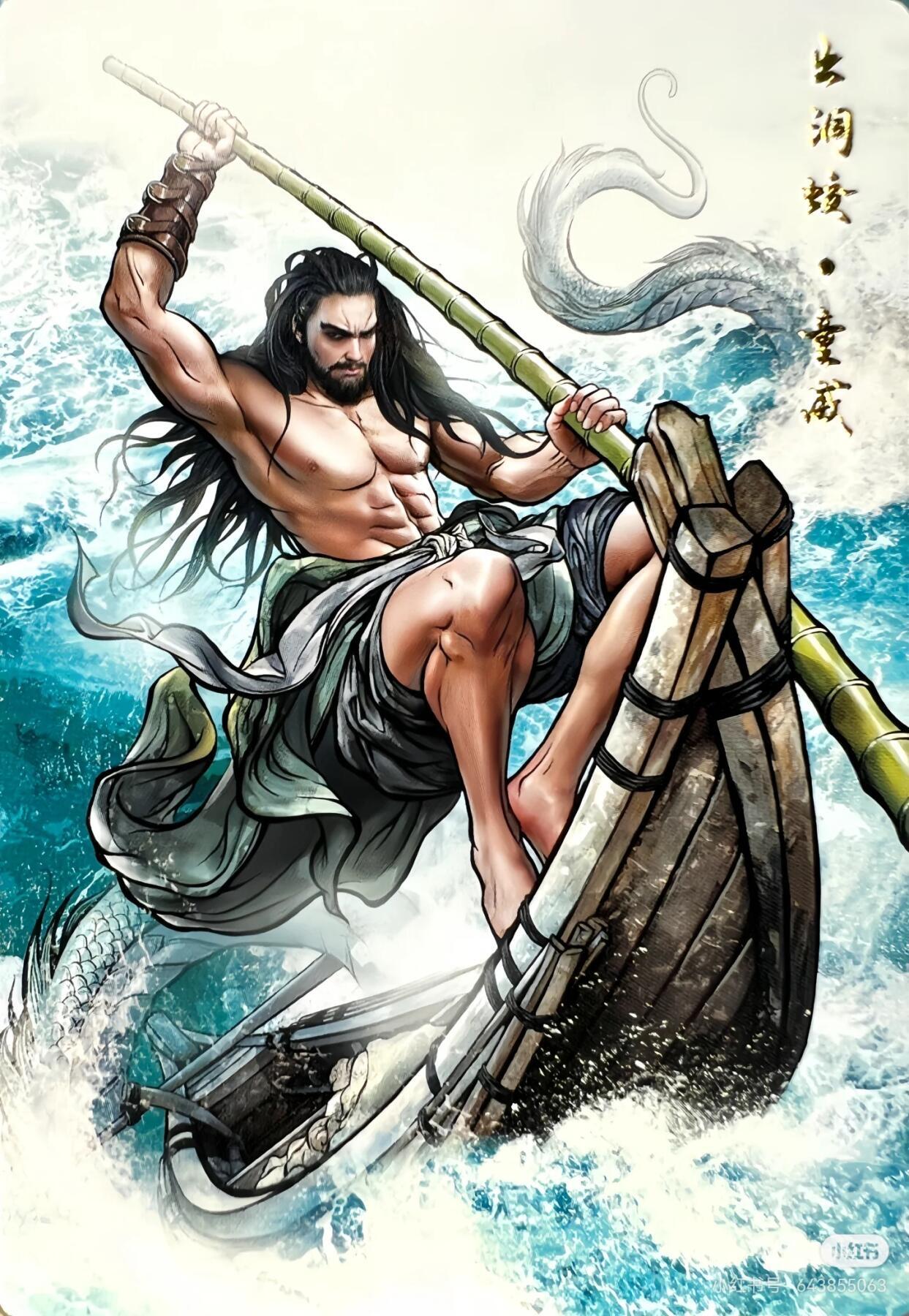 童威,梁山好汉英雄中排行第六十八,为四寨水军头领之七领东北水寨守御副将,上应地进星。本是浔阳江边人,与兄弟童猛专贩私盐,投奔李俊家安身,精通水性,擅长驾船,因此唤作“出洞蛟”。宋江遭李立麻翻待宰时,随李俊赶到,此为一救宋江。宋江遭张横劫杀之时,随李俊赶到,促成众人相认,此为二救宋江。梁山好汉劫法场撤退时,随揭阳三霸赶到,此为三救宋江。大聚义后与阮小五一同守把东北水寨。两赢童贯时,助李俊生擒刘梦龙。征王庆时,与李俊生擒王庆。征方腊时,兄弟二人随李俊前往太湖打探情报,结识太湖四杰,七人结拜为兄弟。江南平定后,七人从太仓港出海化外,自取其乐,另霸海滨。
