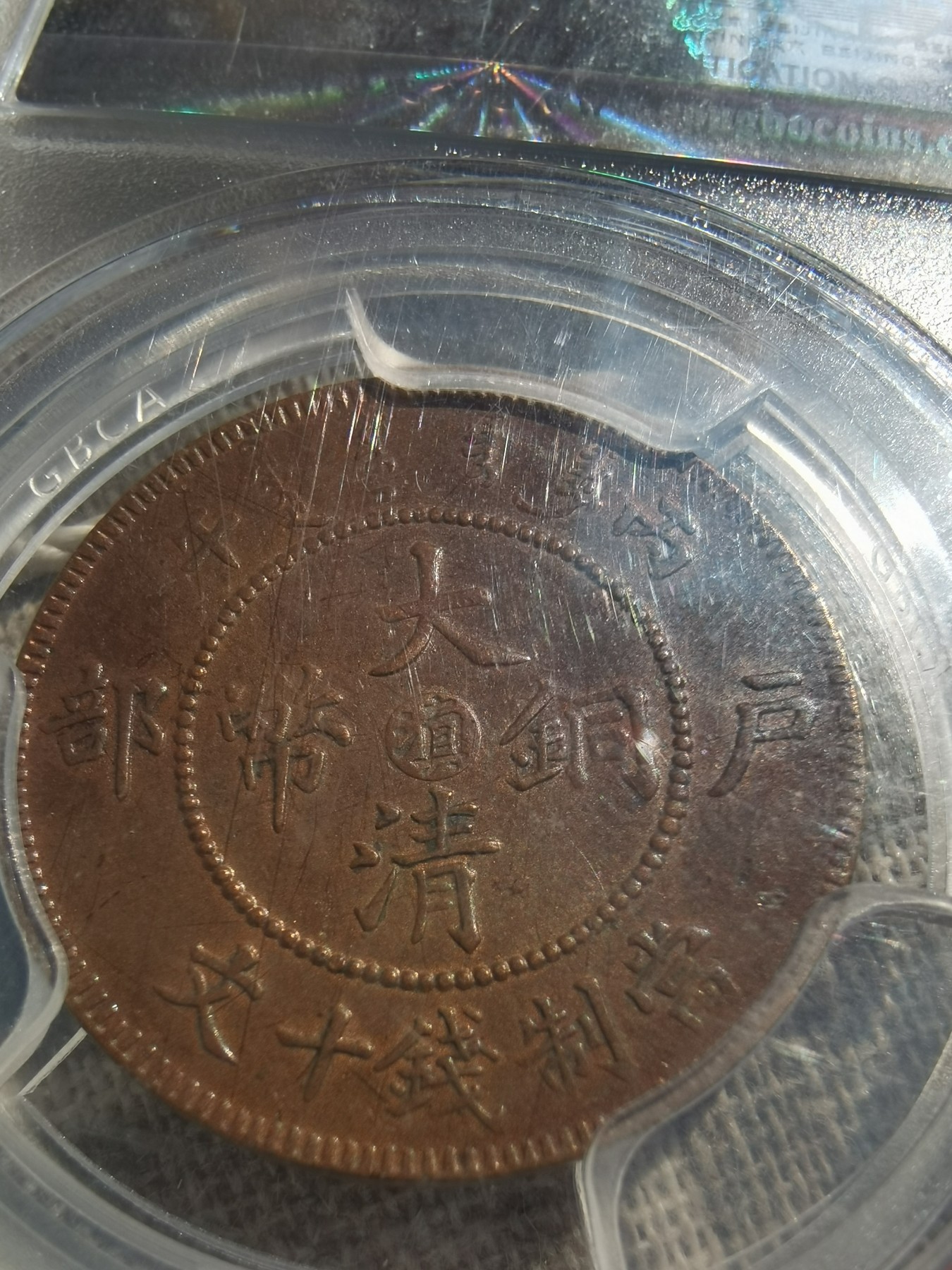 PCGS AU50 大清铜币 中心皖