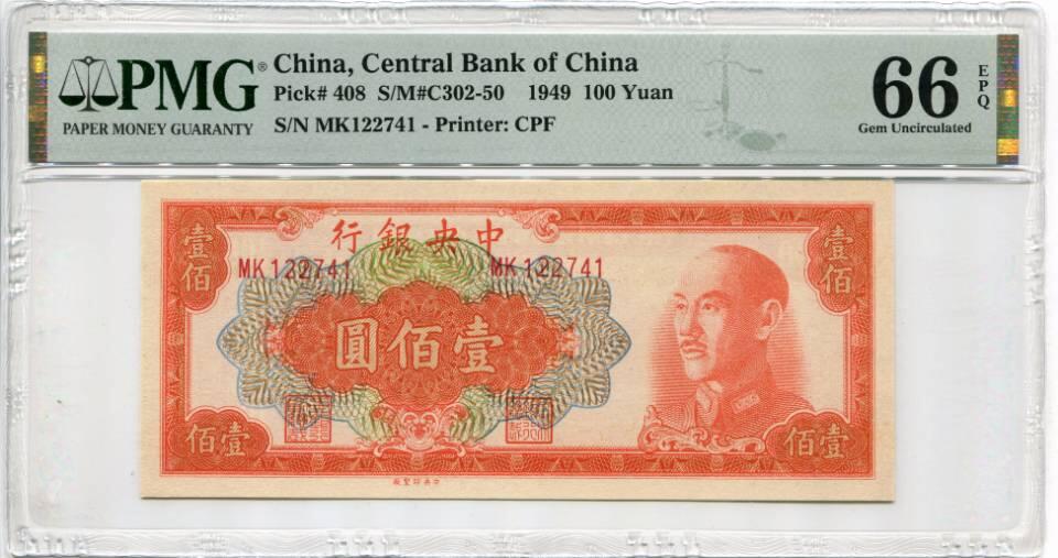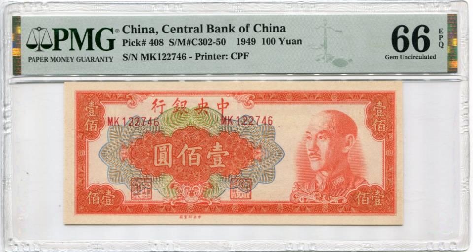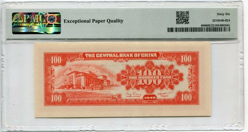 民国38年中央银行金圆券壹佰圆两张,PMG66EPQ,高分高品质,评级币以评级为准,售出不退不换。 1400 包邮