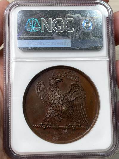 NGC MS64 1807年法国拿破仑一世庆祝法军年度军事胜利大铜章 背面华丽的高浮雕胜利之鹰 异常雄壮威武