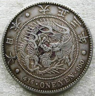 日本贸易银圆是近代流入我国外国银圆中较为常见的一个品种,因币面有飞龙图案,故俗称为日本龙洋。其正面的图案为“飞龙戏珠”,周边的文字有“大日本”和“明治xx年”“大正xx年”的字样。背面图案为环绕的珠圈和十六瓣八重表菊纹,两侧侧为呈弧形排列的菊花和桐花枝叶,中间的文字为汉字“一圆”,下面是绸带扎成的同心结