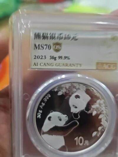 23年熊猫银币70分爱藏金标 OS无养护 完美品 包邮(带说明书)爱藏金标冠军分 充装氮气保护 30克银币 爱藏金标评级封装,状态好,币面干净,无白斑。无磕碰。[1] MS70分OS无养护 氮气标 最新款带密封防水条,赠送爱藏保护袋一个。售出非假不退不换。 收到货及时确定收货的来 不墨迹的来 拒绝到手刀