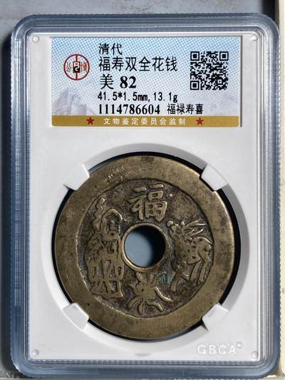 清代"福"字一两吉语银锭,重38.1克,极美85。
