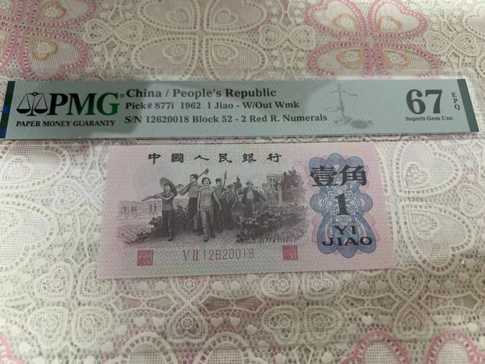 红二凸 无3457 尾8 年份号 PMG67E 52-12620018
