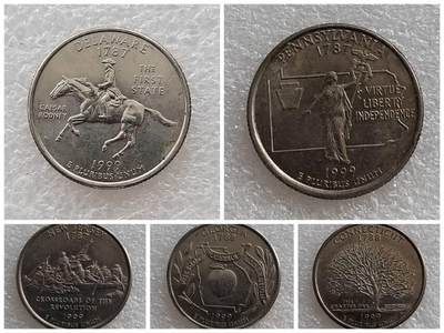 宾夕法尼亚 25 美分币是50个州纪念币计划的第2枚(1999年3月8日发行),描绘的是这个“共同的财富”州的轮廓线,州的格言以及冠石。选择这个设计是帮助人们更好的了解第2个州的建立,它是1787年12月12日加入联邦政府的。