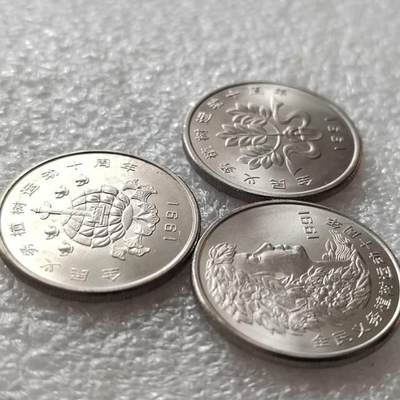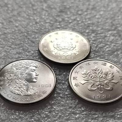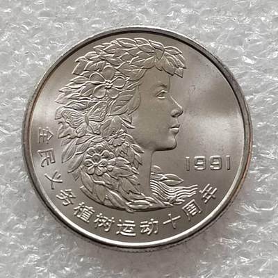 植树节纪念币三枚套 发行背景:纪念全民义务植树运动十周年,1991年3月2日由中国人民银行发行,上海造币厂铸造,总发行量1000万套。 设计特征: 正面:中国植树节节徽与"3.12"字样。 背面:第一枚:橄榄枝、铁锹与绶带组合 第二枚:花卉装饰的女青年头像 第三枚:华表、地球与飞翔的小鸟 钢芯镀镍材质,重量5.88克,直径25毫米,面值1元。