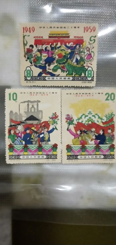 纪70庆祝邮票套票3张,绝品未下水。