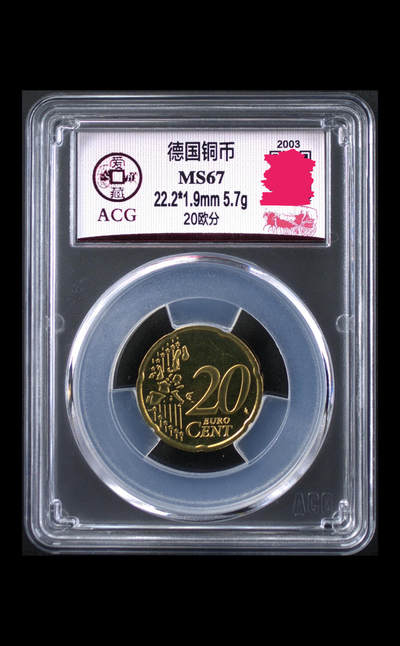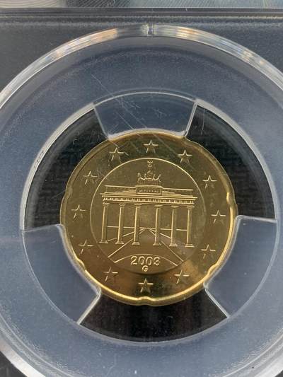 德国发行的20欧分硬币,正面为统一的欧盟版图与面值,背面是象征德国统一的勃兰登堡门,2003年G厂铸造,采用北欧金材质,边缘呈波浪形,是欧元区流通硬币的典型代表,兼具货币功能与收藏价值。