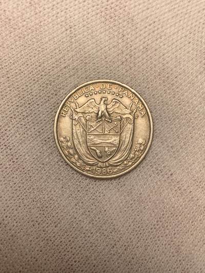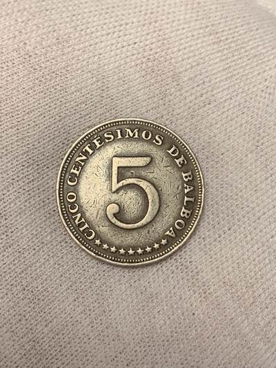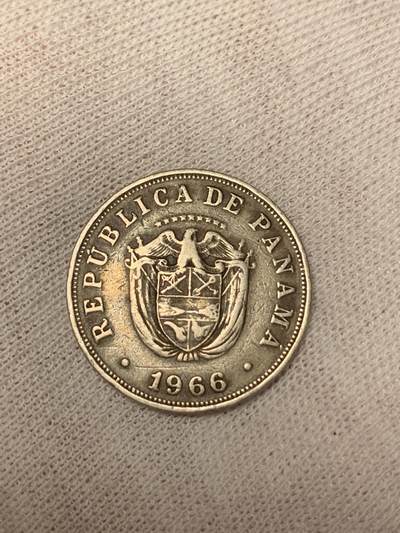 巴拿马1966年5分(5 Centésimos)硬币,巴拿马共和国1966年发行。正面数字“5”及西班牙文“CINCO CENTÉSIMOS DE BALBOA”;背面为巴拿马国徽。