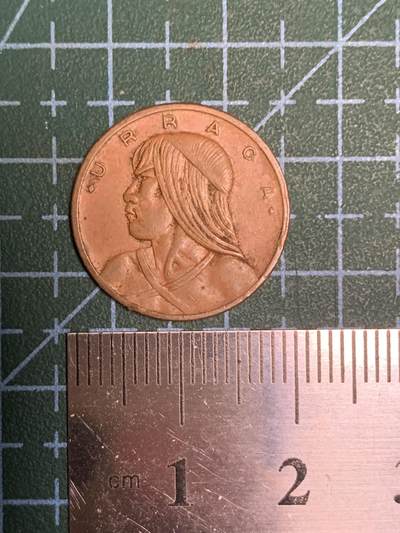 巴拿马1983年1分(1 Centésimo)硬币,巴拿马共和国1983年发行,青铜材质。正面为印第安酋长乌拉卡(Urracá),外圈环刻其名;背面中心标注面额与年份,环绕国名、五角星及橄榄枝与月桂枝纹样。