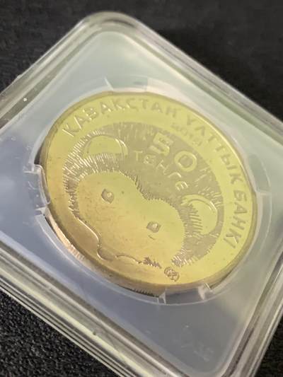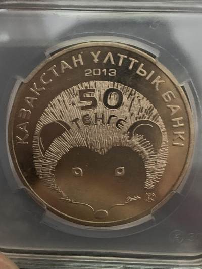 哈萨克斯坦2013年发行的50坚戈长耳刺猬纪念币,属《红皮书》珍稀动物系列。正面为银行名、面值与年份,背面完整呈现长耳刺猬形态,标注学名及哈语名,材质为铜镍合金。