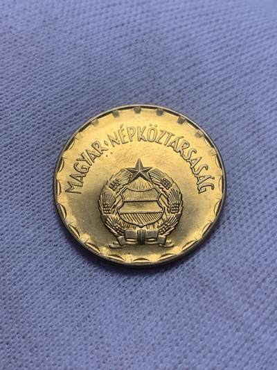 1978年匈牙利人民共和国发行的2福林流通铜币,正面为硕大的数字面值“2”,背面是带五角星的匈牙利国徽,外圈环绕国名“MAGYAR NÉPKÖZTÁRSASÁG”,边缘齿状装饰,材质为铜锌合金。