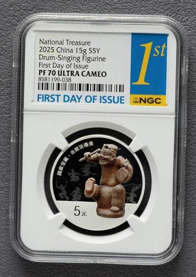 2025年击鼓说唱银币,是央行2025年6月14日发行的“国家宝藏(统一气象)”金银纪念币中的15克圆形银质纪念币,精制99.9%银,面额5元,发行量仅10000枚,属汉代文物主题的稀缺贵金属币 。