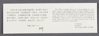 - 背面:坐姿熊猫食竹图案,搭配竹叶元素,刊“1kg Ag.999”字样及面额“300元”