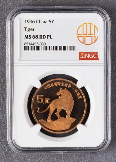 - 发行年份:1996年 - 面值:5元 - 材质:紫铜合金 - 规格:直径32mm,重量13.5g - 工艺:精制版(Proof-like),装帧量约2万枚,普制币发行量600万枚 - 评级信息:NGC MS68 RB PL - MS68:未流通状态,底板与图案细节保存完好,仅存在极轻微瑕疵 - RB:红铜色保留度高,仅存在轻微氧化或包浆 - PL:类精制镜面,底板具有明显光泽感