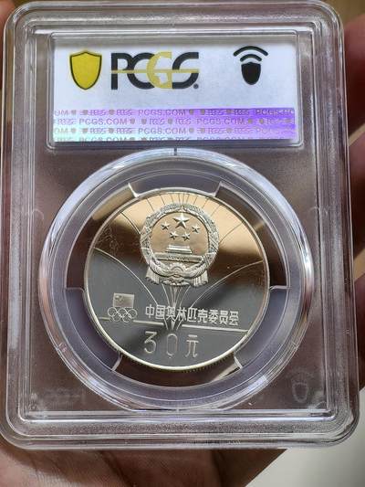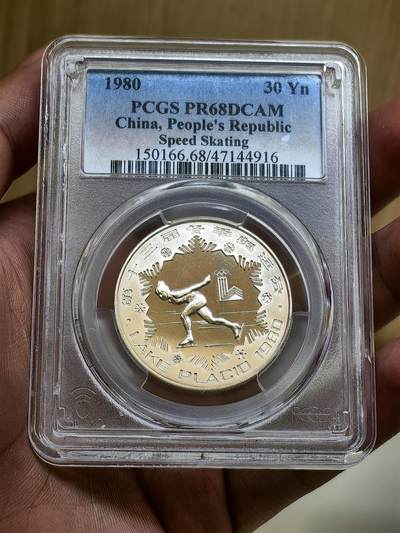 1980年速滑银币是中国为纪念第13届冬奥会而发行的贵金属纪念币,由沈阳造币厂铸造。以下是其详细介绍: - 基本信息:材质为银,重量15克,成色85%,直径33毫米,面值30元,计划发行量和报备实铸量均为5000枚。 - 图案设计:正面图案为国徽、中国奥委会会徽,下方刊面额“30元”字样。背面图案为女子速度滑冰,并有雪花边框,外圈有“第十三届冬季奥运会”中文字样和“LAKE PASS 1980”西文字样。