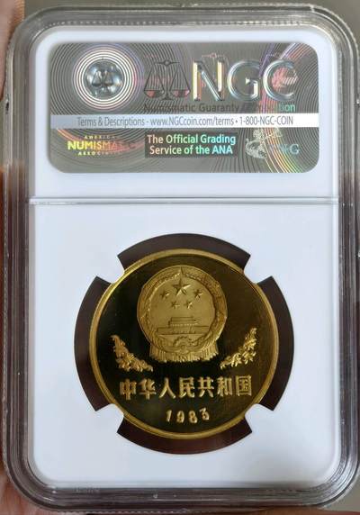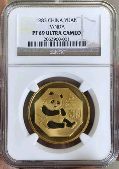 基础信息 - 发行/铸造:中国人民银行,上海造币厂;1983年,精制非流通法定货币(属贵金属币项目序列,多作外事礼品,不零售) - 材质:黄铜(铜70%、锌30%);重量12.7g;直径32mm;面额壹圆(1元) - 央行发行量:30000枚 - 图案:正面国徽+缠枝花卉、国名、1983年号;背面八角开光框内熊猫食竹,框下“壹圆”