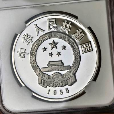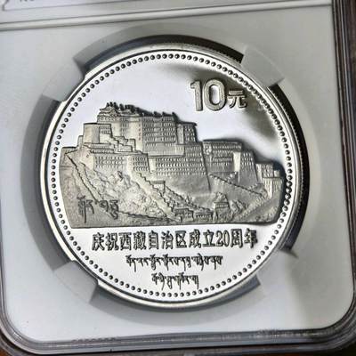 1. 发行方/铸造:中国人民银行,上海造币厂;精制,1985年发行; 2. 面额/规格:10元,1盎司(90%纯银),直径40mm; 3. 发行量:3000枚; 4. 图案:正面国徽、国名、年号;背面布达拉宫,汉藏双文“庆祝西藏