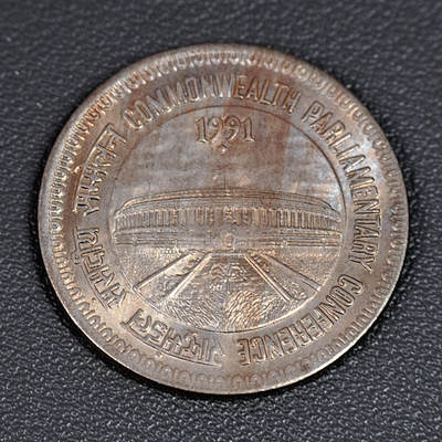 - 环绕文字为英语“COMMONWEALTH PARLIAMENTARY CONFERENCE”及印地语对应译文,纪念第37届英联邦议会会议。