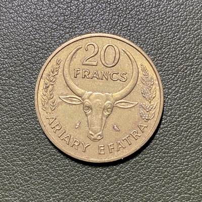 - 发行背景:马达加斯加于1960年独立后,沿用法郎作为货币单位,同时保留传统货币“阿里亚里”作为辅币单位,1阿里亚里=5法郎,因此这枚20法郎也标注为“ARIARY EFATRA”(即4阿里亚里)。